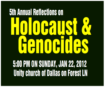 As a group together participating in a dialouge, we have talked, mentioned and shared about more atrocities than an averege person can list, I mean the average you and not the Human rights activists. Here are a few of the many graphic pictures we have shown in our programs. If you have a weak heart, do not watch it, they are too difficult, but imagine the folks who lived through this hell. Please pay homage to them and their suffering by spending two hours a year and accepting our share of individual responsibly to work and to mean the famous Jewish phrase, “Never Again”. http://www.flickr.com/photos/mikeghouse/sets/72157622461372216/show/
