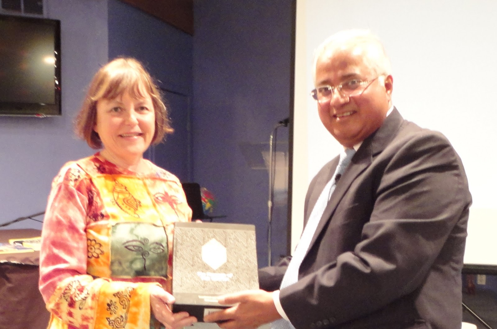I speak on pluralism/ interfaith, Islam, politics, India, cohesive societies, peace and justice. But when I speak about Islam, I make an effort to present a copy of the Qur’aan translation that is nearly right. In the picture, Janet Ellis is receiving the translation of Quran by Muhammad Asad, the most popular translation today and one of the best translations. I also recommend the reformist Qur’aan translation by my friend Edip Yuskel.