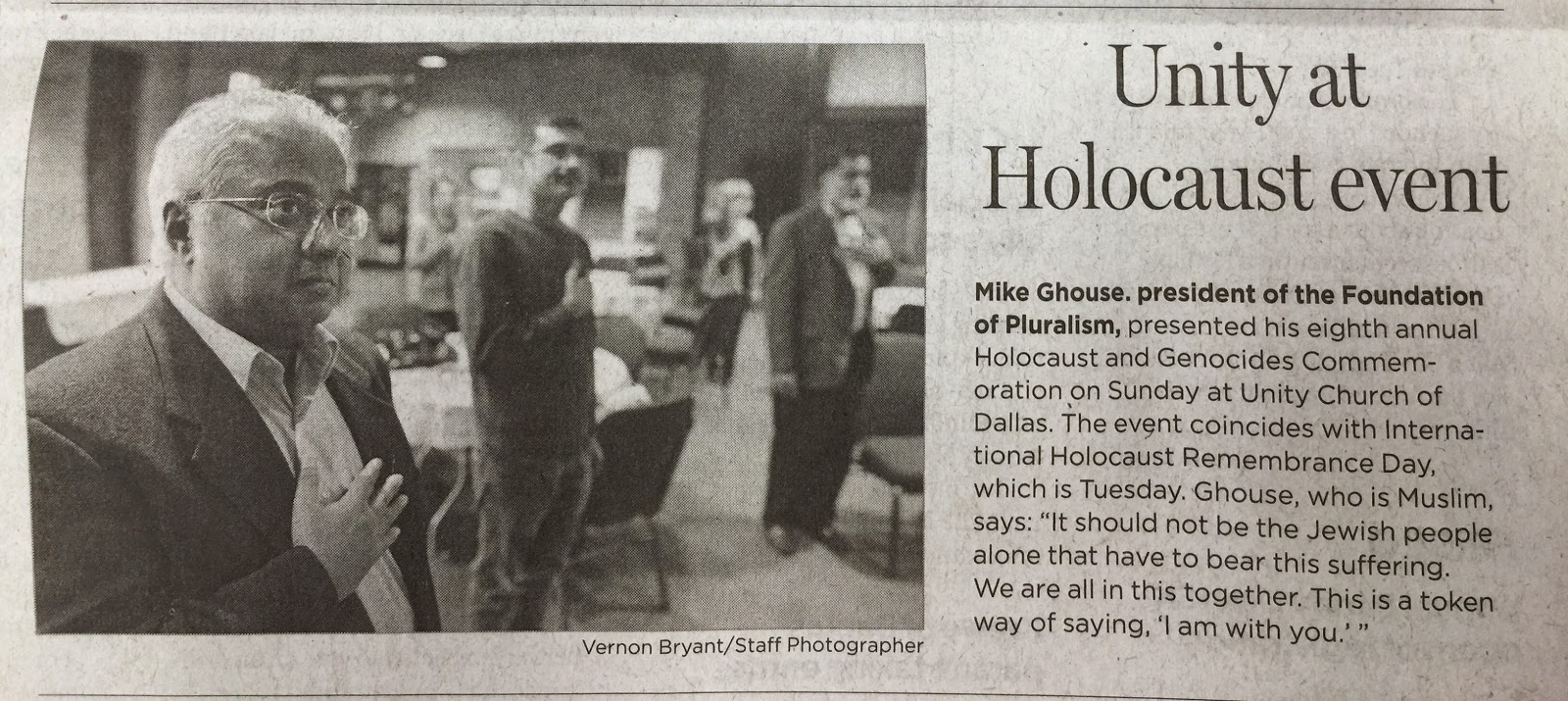 This is the first time in 10 years that I have not organized the Holocaust and Genocides commemoration event, it’s a difficult event for many to attend, yet an average of 300 brave souls have made it each time. As a Muslim, why do I commemorate? The answer is in this article at Huffington Post called Holocaust and the Muslim Guy. (http://www.huffingtonpost.com/mike-ghouse/holocaust-and-the-muslim-_b_4629509.html )