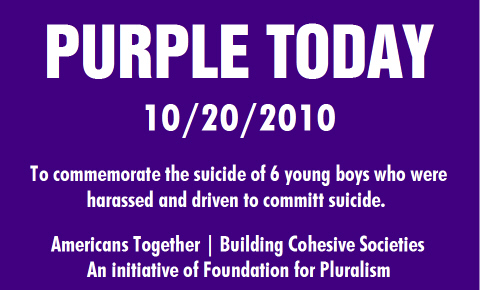 To commemorate the suicide of 6 young boys who were harassed and driven to committ suicide. This reflects un-civility on our part. We have to work for a society, where everyone’s space, culture, ethnicity, sexual orientation and belief is respected. If you can wear or show purple today, it reflects your support for the innocent victims.