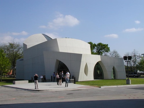 The Interfaith Peace Chapel on Cedar Springs in Dallas jumps to my mind. There was a dire need for a new religious space that reflects the new values of interfaith and pluralism. The artist has encapsulated the values of modern art and architecture to give a complete new dimension to a place of worship, a trend setter for the future interfaith buildings with a non-religious architecture and religious art pieces.