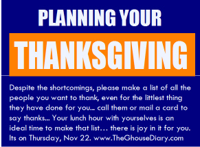 I will repeat my story of a man who had no limbs, no legs, just a torso, he was grateful that he could see the blue skies, smell the dirt when it rains, which is my favorite too, enjoy the aroma of the food as he went door to door asking for food or alms.. its a real humbling story that I was a part of, and Appaiah stunned me when he was so full of thanks for that life… I want to thank Tehran Times, the Iranian News paper who had published that piece a few years ago… that was joyful to me! They just pulled it out of my blog www.TheGhouseDiary.com. God willing I will get that story published in Huffington Post for thanksgiving, with additional info on my blog.